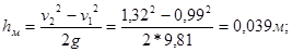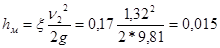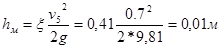 | Величина местных потерь напора