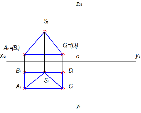 6. На форматі А4 навести визначені положення ребер та граней. Ребра: АВ – фронтально-проекціювальне положення; AS – загальне положення; … Грані: ABCD – горизонтальне положення; ASB - фронтально-проекціювальне положення; …