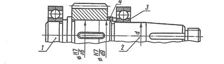 1-шип; 2-шейка; 3-подшипник; 4-кольцо с поперечным пазом для размещения тяг съемника подшипника Рисунок 3.5 – Прямой ступенчатый вал