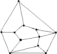 Итак, мы имеем дело с плоским выпуклым многоугольником M, разбитым на грани. Пусть Г 3 - число трехугольных,..., Гm - число m -угольных граней. Таким образом, m есть число сторон (или углов) той грани, у которой это число наибольшее. Если многоугольник (или грань) имеет n сторон, то, как известно, сумма его внутренних углов равна p(n - 2). Поэтому сумма всех внутренних углов всех граней равна S = p[ Г 3 + 2 Г 4 +... + (m - 2) Гm ]. (4) Мы хотим теперь преобразовать это выражение. Пусть P 1 - число ребер разбиения, лежащих на границе многоугольника M, и P 2 - число внутренних ребер. Тогда P = P 1 + P 2. Так как каждое внутреннее ребро относится к двум граням, а каждое граничное - к одной, то, суммируя ребра по всем граням, получаем 3 Г 3 + 4 Г 4 +... + mГm = P 1 + 2 P 2. (5) Используя очевидное равенство Г = Г 3 + Г 4 +... + Гm и равенство (5), мы можем преобразовать правую часть (4) так Г 3 + 2 Г 4 +... + (m - 2) Гm = (3 Г 3 + 4 Г 4 +... + mГm) - 2(Г 3 + Г 4 +... + Гm) = = (3 Г 3 + 4 Г 4 +... + mГmГm) - 2 Г = P 1 + 2 P 2 - 2 Г. (6) Вычислим теперь сумму углов S другим способом. Пусть B 1 - число вершин разбиения, лежащих на границе многоугольника M, и B 2 - число внутренних вершин разбиения. Сумма всех внутренних углов самого многоугольника M (а не всех его граней!) равна p(B 1 - 2), а сумма всех углов граней вокруг каждой внутренней вершины равна 2p. Поэтому S = p(B 1 - 2) + 2p B 2. (7) Из равенства (4), (6) и (7) получаем P 1 + 2 P 2 - 2 Г = B 1 - 2 + 2 B 2 или 2(P 2 - P 2 + Г) = B 1 - 2 + 2 B 2. Но так как B 1 = P 1, B = B 1 + B 2 и P = P 1+ P 2, то B - P + Г = (B 1 + B 2) - (P 1 + P 2) + Г = 1, что и требовалось. Переходим к выводу следствий из формулы Эйлера. Всюду в дальнейшем под многогранником мы понимаем выпуклый многогранник. Назовем степенью вершины многогранника число выходящих из нее ребер. Ясно, что степень каждой вершины не меньше трех. Обозначим через B 3 число вершин степени 3, через B 4 - число вершин степени 4 и т. д. Тогда B = B 3 + B 4 +... Bm, (8) Здесь m - максимальная степень вершины и B 1 = B 2 = 0. Для нас будет безразлично, каково точное значение числа m; поэтому формулу (8) мы запишем в таком виде B = B 3 + B 4 + B 5 +.... (8') Каждая грань многогранника есть выпуклый многоугольник, число сторон (или углов) которого равно 3 или 4 и т.д. Обозначим через Гi число i -угольных граней многогранника (i = 3, 4,...). Тогда Г = Г 3 + Г 4 + Г 5 +.... (9) Суммируя ребра по всем вершинам и учитывая, что каждое ребро соединяет две вершины и поэтому учитывается дважды, получаем 2 P = 3 B 3 + 4 B 4 + 5 B 5 +.... (10) Аналогично, сумммируя ребра по всем граням и учитывая, что каждое ребро принадлежит двум граням и поэтому считается дважды, имеем 2 P = 3 Г 3 + 4 Г 4 + 5 Г 5 +.... (11) Обратите внимание на то, что во все соотношения (8)-(11), как и в формулу Эйлера (1), пара чисел B и Г (а также пары чисел B 3 и Г 3, B 4 и Г 4 и т. д.) входят симметрично, т. е. эти соотношения остаются справедливыми, если заменить в них число B числом Г, число B 3 числом Г 3 и т. д., и наоборот. Поэтому любому утверждению, например, о гранях многогранника, выведенному из формулы (1) и равенств (8)-(11), соответствует аналогичное (двойственное) утверждение о его вершинах. В этом состоит так называемый принцип двойственности. В частности, двойственными друг другу являются равенства (10) и (11). Формула Эйлера двойственна сама себе. Этот принцип используется ниже. Чтобы получить первое следствие из формулы (1), умножим обе ее части на 2, затем подставим в нее вместо B, 2 P и Г их значения из (8), (10) и (9). Тогда получим 2(B 3 + B 4 +...) - (3 B 3 + 4 B 4 +...) + 2(Г 3 + Г 4 +...) = 4. (12) Двойственным образом получаем 2(B 3 + B 4 +...) - (3 Г 3 + 4 Г 4 +...) +