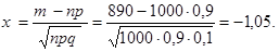 где Пример. Имеется партия деталей, состоящая из 1000 штук. В среднем среди деталей такого вида стандартные детали составляют 90%. Решение. Число испытаний в данном случае достаточно велико