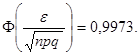 Пример. Подлежат исследованию 1000 проб руды. Вероятность промышленного содержания металла в каждой пробе равна 0, 15. Найти границы, в которых с вероятностью 0, 9973 будет заключено число проб руды с промышленным содержанием металла. Решение. Искомые границы для числа