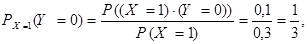 где вероятности, стоящие в числителях последних дробей, берутся из таблицы совместного закона распределения Примера #, вероятность