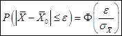 Пусть задана генеральная совокупность объектов, для которой фиксирован некоторой числовой признак Пример. Пусть некоторая совокупность деталей обследуется на предмет их длины. Тогда В том случае, когда оценивание сводится к использованию приближенного равенства Возможно также интервальное оценивание генеральной средней (см. § 7.1). Для того чтобы объяснить, в чем оно состоит, введем в рассмотрение следующие понятия. Определение. Для произвольного Определение. Вероятность того, что неизвестное значение генеральной средней Таким образом,