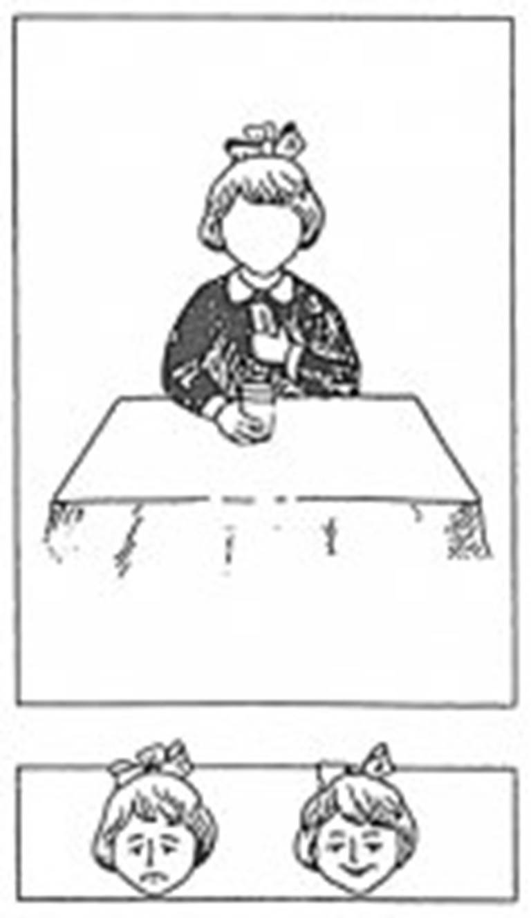 На основании данных протокола вычисляется индекс тревожности ребенка (ИТ), который равен процентному отношению числа эмоционально негативных выборов (печальное лицо) к общему числу рисунков (14):