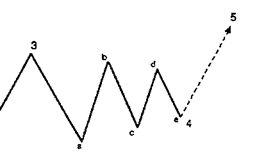 Рис. 7-13 Треугольник волны " b" Когда треугольники возникают в волне " Ь", цены имеют тенденцию вырываться в направлении корректирующей волны " а", начинающей коррекцию.