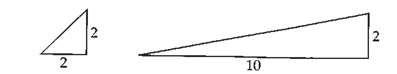 Рис. 7-14 Две единицы в высоту против двух единиц в ширины (влево), и две единицы в высоту против десяти единиц в ширину (вправо) чески не считают волны в качестве таковых. Они рассматривают изменение цены, которое покрывает волна. На примере, показанном на Рисунке 7-14, волна, которая составляет две единицы в высоту две единицы в ширину (измерение во времени) рассчитывается так же, как и волна, определяемая двумя единицами в высоту и десятью единицами в ширину. Совершенно ясно: хотя они обе подсчитаны как две единицы в высоту, они не относятся к одному и тому же типу рынка. Высота волны всегда рассчитывается по вертикальной шкале с игнорированием фактора времени. Когда мы подсчитаем временной фактор, то увидим, что волна образует прямоугольный треугольник (Рисунок 7-15). В процессе изучения этого, я заметил, что существует определенная связь между областью, создаваемой ценой и изменением во времени для каждой волны.