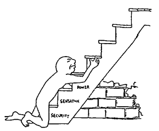 Рисунок 11-4 Мировоззрение левого полушария: бесконечная лестница в нашем неидеальном образовании. Мы привыкли полагать и верить, что восхождение по бесконечным ступенькам является не только неизбежным, но и в этом как раз и состоит весь смысл нашей жизни. Для левого полушария все представляется как " мир, где волк поедает волка", а мы должны нанести первым удар, прежде чем кто-то нанесет его нам. Характеристики Трейдера " Левого Полушария" Есть пять показателей или характеристик активности, которые являются важными для трейдеров, они проявляются только у левого полушария. Всякий раз, когда вы сознаете, что происходит что-либо из описанного ниже, то это означает: руководство в этот момент находится в руках левого полушария. 1. Язык. В то время, пока вы читаете эти строки, ваше левое полушарие управляет тем, что вам представлять. Никакая другая часть вас не в состоянии прочесть или сказать на английском или на ином языке. Эта часть вас имеет дело только с концепциями. Она не входит в контакт непосредственно с реальностью. Все ваши ощущения возникают из центра, и только центр управляет вашим поведением. Это - главная причина, по которой " позитивное мышление" не работает. Девиз: " Каждый день, с каждым новым шагом, я становлюсь все лучшим и лучшим трейдером", - не только не действует, но и работает в обратном направлении, поскольку центральная часть, которая управляет поведением, не понимает этих слов. Ваша сидящая поза при чтении этой книги, местонахождение ваших рук, распределение веса, положение ваших ног, ваше дыхание, сердечный ритм и так далее - все это управляется " подсознательной" частью. Мечты возникают внутри вашей центральной части, вот почему вы никогда не мечтаете, пока читаете книгу. Ваш центр " не умеет" читать на английском (или на любом ином) языке. Единственным исключением является то, что известно как грезы наяву, которым мы предаемся, когда не спим. Если бы вы обладали способностью преобразовывать свои позитивные размышления в язык (мечты) центральной части (движение, полет, эмоциональное поведение и так далее), то вы могли бы иметь намного лучшие результаты. 2. Время. Смысл прошлого, настоящего и будущего существует только в левом полушарии. Центральная часть и правое полушарие существуют только в вездесущем сейчас. Вы можете " опаздывать" или " торопиться" только в левом полушарии. Центральная часть и правое полушарие никогда не спешат. Вы же не торопите рост своих волос или процесс переваривания пищи! 3. Принятие решения. Смысл правоты и неправоты, понятия лучше или хуже существуют только в левом полушарии. Центральная часть и правое полушарие не могут представить себе " хорошую" или " плохую" торговлю. Такое суждение возникает только у левого полушария. 4 Отсутствие чувства юмора. Левое полушарие подобно доктору Споку в кинофильме " Звездный переход". Спок обладал способностью мыслить как дедуктивными, так и индуктивными методами, но у него полностью отсутствовало чувство юмора. Чувства возникают из центральной части и правого полушария. 5. Усилие или борьба. Всякий раз, как вы вступаете в какую-либо борьбу, за это ответственно левое полушарие. Эта единственная ваша часть, которая способна к борьбе. В любое время, когда вы разговариваете или думаете вслух, осознаете временные границы, пытаетесь хорошо торговать, воспринимаете