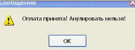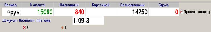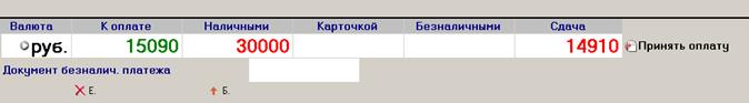 Необходимо отменить оплату. Отмена оплаты осуществится по клавише «Б». Курсор опуститься в панель приема платежей, осуществит отмену оплаты и станет в поле приема оплаты.