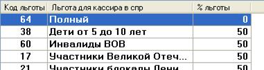 Вводя первые буквы, ограничиваем список остановочных пунктов для выбора. Движение по списку стрелками «Вверх», «Вниз», выбор подтверждаем «Enter». «Выбор места» - служит для ручного выбора места в рейсе, осуществляется клавишей «ПРОБЕЛ», выход по «Enter». После формирования списка билетов, при необходимости можно поставить льготу на билет, нажав «Enter», когда курсор находится на коде льготы. Откроется справочник льгот