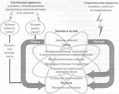 Структура представляет собой упрощенную схему того, как организации вырабатывают, поддерживают и размещают стратегически важный запас знаний, необходимый для создания стоимости. Мы уверены, что для того, чтобы получить в конечном счете нужный состав и объем знаний, которые компания сможет достаточно эффективно использовать, необходимо создать взаимосвязанное управление всеми элементами.