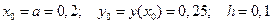 ○ Для численного решения заданного уравнения вида (1) с начальным условием (2) нам потребуется выполнить Первый шаг. (k = 0). Имеем: