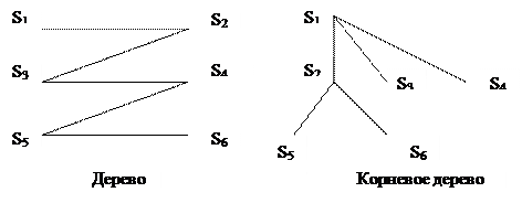 6. Связный граф, не содержащий циклов наз. деревом. Если у дерева выделена одна вершина, она называется корнем дерева, а сам граф в этом случае будет корневым деревом (рис.2). 7. Связный подграф исходного графа, который не содержит циклов, и в котором путь от корня до каждой из вершин является наименьшим из всех возможных, называется остовным деревом.