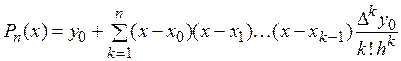 Интерполяционный многочлен Ньютона для равноотстоящих узлов записывается в виде