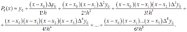 Видим, что здесь шаг интерполяции h = 1. Степень полинома определяется числом (порядком) конечных разностей, т.е., по формуле (4) или (5) имеем: