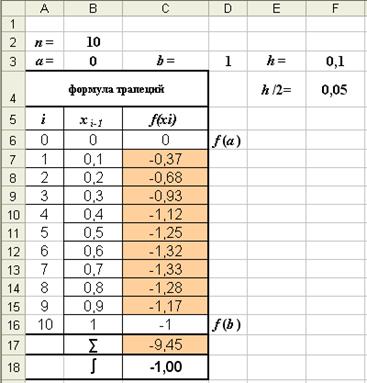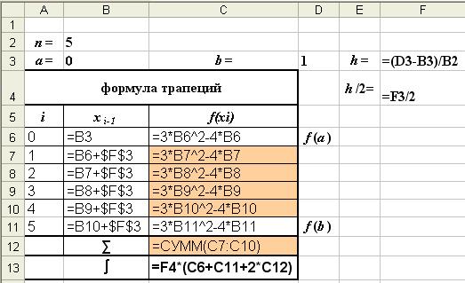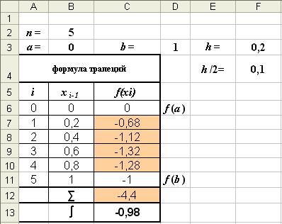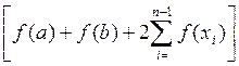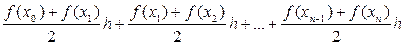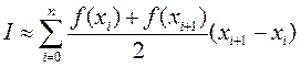 Так как площадь трапеции равняется полусумме оснований, умноженной на высоту, интеграл приближенно равен сумме площадей всех полученных трапеций:
