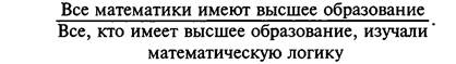Здесь и далее над чертой будем писать посылки, под чертой — заключение. Для того чтобы заключения были истинными, необходимо знать способы их получения, т.е. логическую связь между посылками и заключением. Незнание законов логики ведет к ложным заключениям. Например, оцените истинность заключений: