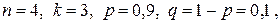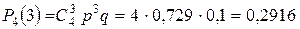 Эта формула определяет полиноминальное распределение вероятностей. Биномиальное распределение является частным случаем полиноминального распределения при Пример 4.1.1. Всхожесть семян равна 90%. Найти вероятность того, что из четырех посеянных семян взойдут а) три; б) не менее трех. Искомые вероятности находим с помощью формулы Бернулли. В первом случае