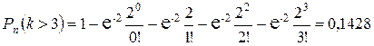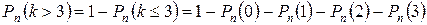 Пример 4.3.2. Прядильщица обслуживает 1000 веретен. Вероятность обрыва нити на одном веретене в течение 1 минуты равна 0, 002. Найти вероятность того, что в течение 1 минуты обрыв произойдет более чем на трех веретенах. В соответствии с условиями: