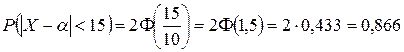 (Значение Последнее равенство означает, что событие, состоящее в осуществлении неравенства Формула (**) выражает правило «трех сигм»: если случайная величина распределена по нормальному закону, то модуль ее отклонения от математического ожидания не превосходит утроенного среднего квадратического отклонения. В случае