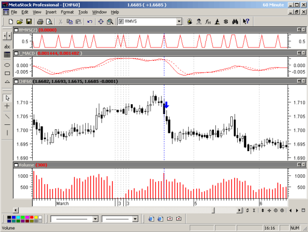 III. СИСТЕМА ТРЕХ ИНДИКАТОРОВ. Работает в любом состоянии рынка. Разработана на основе книги Била Уильямса «Торговый Хаос» путем творческой переработки для рынка «Форекс» Эта система включает в себя индикатор Macdprofitunity 5 - 34 - 5, который представляет из себя индикатор MACD только построенный по среднему значению интервала (такой индикатор Вы можете получить, посетив «Школу трейдера» на сайте «Форексклуба», индикатор объема и MFI - индекс облегчения рынка