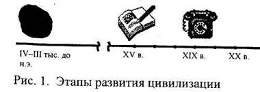 1. Первая революция вызвана изобретением письменности (Египет, Месопотамия, IV—III тыс. до н. э.). Это позволило человечеству осуществить передачу знаний от поколений к поколениям. Впервые появилась принципиально новая технология накопления и распространения информации. 2. Вторая революция (середина XV в.) связана с изобретением книгопечатания (в Китае — XI в., в Европе — середина XV в.). Это существенно повлияло на индустриальное развитие и культуру общества, тем самым была заложена основа развития бумажной технологии. 3. Изобретение электричества (конец XIX в.) способствовало появлению телеграфа, телефона, радио, которые позволили оперативно передавать и накапливать информацию в любом объеме. Этот период связан с третьей информационной революцией, когда, как и прежде, еще не решался вопрос обработки информации. 4. Начало четвертой революции (70-е гг. XX в.) ознаменовано изобретением микропроцессорной технологии и персонального компьютера и разработкой информационных коммуникаций (систем передачи данных, компьютерных сетей). Для этого периода характерны три основные инновации: - переход от механических и электрических средств преобразования информации к электронным средствам; - миниатюризация всех узлов, устройств, приборов, машин; - создание программно-управляемых устройств и процессов. 5. Следующий революционный этап в информационной сфере связан с информатизацией общества, что предполагает создание и развитие такой новой отрасли, как информационная индустрия, которая связана с производством технических средств и использованием технологий для производства новых знаний. ИКТ, Экспертные системы к 2020году заменят человека в процессе принятия решений. На современном этапе развития человечества важнейшими составляющими информационной индустрии являются все виды информационных технологий, особенно телекоммуникации (дистанционная передача данных на базе компьютерных сетей и современных технических средств связи). Ряд ученых выделяют характерные черты информационного общества (табл. 1): - решение проблемы информационного кризиса, т. е. разрешение противоречия между информационной лавиной и информационным голодом; - обеспечение приоритета информации по сравнению с другими ресурсами; - информационная экономика как главная форма развития общества; - охват информационной техникой и технологией всех сфер социальной деятельности человека; - формирование информационного единства всей человеческой цивилизации, где с помощью средств информатики будет реализован свободный доступ каждого человека к информационным ресурсам всей цивилизации; - реализация гуманистических принципов управления обществом и воздействия на окружающую среду. Однако прогнозируются и негативные тенденции: - большее влияние на общество средств массовой информации; - влияние информационных технологий на частную жизнь людей и деятельность организаций; - наличие проблемы отбора качественной и достоверной информации в информационном потоке; - трудность адаптации многих людей к среде информационного общества.