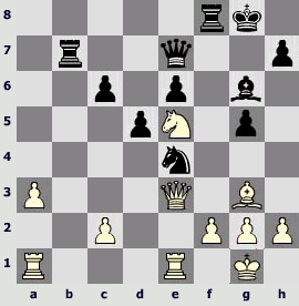16...Ґf8! Рубинштейн принимает правильное решение и переводит слона на h6, поскольку тяжелые фигуры белых, расположенные на диагонали с1-h6, довольно уязвимы. 17.Јd1 Ґh6 18.¦c3 0-0?! Опять же заслуживала внимания более активная игра: 18...g5!? Вот как могли развиваться события: 19.g4 hg 20.hg ¤h4+ (20...¤fe7 21.¤a3 ¤g6 22.¤b5?) 21.¤: h4 22.¤a3 ¤e7 23.¦: c8+ ¤: c8„. Рубинштейн решил просто продолжить развитие, однако в последующей игре Нимцович сумел переиграть соперника. А ведь Рубинштейн был тогда одним из сильнейших шахматистов мира! 19.g4 ¤fe7 (взять на h5 белые не грозят, потому что тогда конь е7 сможет вернуться на f5) 20.¤a3Z ¤b4 21.¤c2 ¦: c3 22.Ґ: c3 ¤: c2 23.Ј: c2 ¦c8. Черные захватили линию «с», но у них нет на ней полей вторжения. 24.Јb2 (24.g5 Ґf8 25.Јd2 ¤c6=) 24...Ґb5 25.Ґ: b5 Ј: b5 26.Ґd2 Ґf8 27.¦c1= hg 28.hg ¦c6 29.Јa3!? (29...¤c8!? 30.Јb2 ¤e7„) 29...¦: c1 30.Ј: c1 ¤c6 31.Ґh6 Ґe7 32.Ґg5 Јe2. Лучше было отступить слоном на f8, и у белых вряд ли есть что-то больше ничьей. 33.Ґ: e7 ¤: e7 34.Јf4 M Јe4?! Рубинштейн допускает ошибку: размен ферзей приводит к образованию слабости на е4, и коневой эндшпиль оказывается непростым для черных. Правильно 34...¤c6! 35.¤g5 ¤d8 36.Јf3 Ј: f3+ 37.ў: f3?. 35.Ј: e4 de 36.¤d2 ¤c6 37.¤: e4 ¤: d4 38.f4 (38.¤d6!? b5 39.f4 g5! 40.fg ўg7 41.ўg3 ўg6 42.ўf4 ¤e2+=) 38...b5?! (38...¤e2!? 39.ўf3 ¤c1 40.¤c3 g5!? 41.fg ¤d3 42.ўe4 ¤f2+ 43.ўd4 ¤: g4M) 39.ўf2 M a4 40.ba ba 41.¤c3?! Нимцович переиграл Рубинштейна, но своим последним ходом дает сопернику контригру. Правильно было 41.ўe3±, например: 41...¤c2+ 42.ўd2 ¤b4 43.¤f6+ (43.a3 ¤d5 44.¤f6+ ¤: f6 45.efg5„) 43...ўg7 44.a3 ¤c6 45.g5 ¤d4 46.ўc3 ¤e2+ 47.ўb4 ¤: f4 48.ў: a4 ўf8 49.ўb5 ўe7 50.a4 ўd8 51.a5 ўc8 52.¤e8ќ. 41...g5! Единственная возможность получить контршансы. Проигрывало 41...a3 42.ўe3 ¤c2+ 43.ўd2 ¤b4 44.g5 ўf8 45.ўe3 ўe7 46.ўd4 ¤c2+ 47.ўc4 ¤e1 48.¤e2 ўd7 49.ўb4 ўc6 50.ў: a3 ўd5 51.ўb4 ўe4 52.a4ќ. 42.ўe3. Хорошо и 42.¤: a4 gf 43.¤c5 ўg7 44.¤d3 f6 45.ef+ ў: f6 46.¤: f4 ўg5 47.ўg3 e5 48.¤h3+±. 42...¤c2+ 43.ўd3 ¤b4+ 44.ўc4 ¤: a2 45.¤: a2 gf 46.¤c3. Ноне 46.ўd4 ўg7 47.ўe4 f6 48.ef+ ў: f6 49.ў: f4 e5+ 50.ўf3 a3=. 46...ўg7. Неспасало 46...a3 47.ўb3! ќ (47.ўd3 ўg7 48.ўe4 f6 49.ef+ ў: f6 50.ў: f4 e5+=) 47...ўg7 48.¤e4 f3 49.ў: a3 ўg6 50.ўb4ќ. 47.¤e4 ўg6 48.ўb4 f3 49.ў: a4 f2 50.¤: f2 ўg5 51.¤d3?? Этот ход выпускает выигрыш, который достигался путем 51.ўb4 ўf4 52.¤d3+ ў: g4 (52...ўe4 53.ўc4ќ) 53.¤c5 ўf5 54.¤d7ќ f6 55.ef ўg6 56.ўc5 ўf7 57.ўd6ќ. Должен сказать, что результаты Нимцовича вообще были бы гораздо выше, не допускай он довольно регулярно подобные «ляпсусы». 51...f6! = 52.ef ў: f6 53.¤f2 ўg5 54.ўb4 e5 55.ўc4 e4. Ничья. Три года спустя на крупнейшем турнире начала XX века с системой 3.е5 пришлось столкнуться – чуть ли не единственный раз в своей многолетней практике – второму чемпиону мира. Эмануил Ласкер продемонстрировал неплохой метод борьбы с планом 3.е5 с5 4.dc. З. Тарраш – Эм. Ласкер 1.e4 e6 2.d4 d5 3.e5 c5 4.dc. Тарраша часто называют последователем Стейница, популяризатором его идей. Возможно, Тарраш действительно применил план с 4.dc потому, что так играл Стейниц. Но, как мы уже знаем, первооткрывателем этого плана был Луис Паульсен! Кстати, Стейниц не раз отдавал должное дебютным концепциям Паульсена, говорил, что современные шахматисты многому у него научились. С современной точки зрения, ход 4.dc преждевременен, потому что слишком упрощает проблемы черных, связанные с развитием фигур. 4...¤c6 5.¤f3 Ґ: c5 6.Ґd3 f5!? Любопытное продолжение, которое ограничивает возможности белых создать атаку на королевском фланге. Минус же хода в том, что пешка е6 становится безнадежно слабой. Теперь даже проигрыш пешки е5 будет для белых не так опасен. 7.c3 a6. Профилактика: Ласкер препятствует маневру b4-b5 и обеспечивает слону стоянку на а7. 8.¤bd2 ¤ge7 9.¤b3 Ґa7 10.0-0 0-0 11.¦e1 ¤g6Z. Обе стороны делали довольно естественные ходы, и получилась позиция с обоюдным