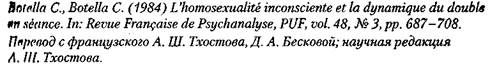 в небытие всеми возможными способами. Так или иначе, необходимо устроить, словно её тут нет. Как это констатирует П. Видаль-Наке («Бумажный Эйхман»), говоря о Фориссоне, для которого никогда не существовали ни газовые камеры, ни холокост: «Это действительно одна из черт современной, так называемой, «культуры»: в один прекрасный день объявить несуществующими социальные, концептуальные, культурные, биологические реалии, которые, как считалось, прочно вошли в жизнь». Тот же самый профессор Фориссон когда-то опубликовал брошюру, где доказывал, что «Пьяный корабль» представляет собой не более чем мешанину воспоминаний и плагиата, одним словом, как поэт, Рембо никогда не существовал. И тем не менее, ему можно было бы ответить знаменитыми словами Шарко: «Это не мешает существовать». Излагая свои соображения, я попытался наметить некоторые этапы с целью идентифицировать и, в какой-то мере, понять конфликт между Эдиповым комплексом и нарциссизмом, учитывая напряженность внутри психоаналитического сообщества, которая, как мне кажется, представляет собой одно из выражений этого конфликта. Действительно, значение этого конфликта выходит далеко за пределы профессионального сообщества психоаналитиков и заслуживает проведения более глубоких исследований. Возвращаясь к Рембо, я выразил бы эту надежду словами поэта: «Придут другие ужасные труженики», которые продолжат выполнение поставленной задачи. Сезар и Сара Ботелла