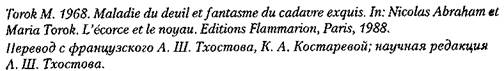 Разоблачающее недоразумение Чтобы вернуться к истокам нашей проблематики и чтобы также отметить, чем она поражает с первого взгляда, предлагаю внимательному читателю удивительную переписку между Фройдом и Абрахамом. Берлин-Грюневальд, 13. 3.1922 ДОРОГОЙ ПРОФЕССОР, Инкорпорация объекта сильно потрясает в моих случаях... Я располагаю очень подходящим для вашей концепции материалом, иллюстрирующим процесс во всех его деталях, В связи с этим, у меня небольшая просьба: я хотел бы отдельную копию Печали и меланхолии. Она будет очень полезна для моей работы. Заранее спасибо. Краткий комментарий, касающийся этой статьи. Вы утверждаете, дорогой Профессор, что ничего в нормальном горе не соответствует прыжку, совершаемому меланхоликом, переходящим в маниакальное состояние. И, однако, мне кажется, я смогу описать процесс подобного рода, не зная при этом, можно ли его обнаружить в каждом случае. У меня впечатление, что значительное число людей демонстрирует, вскоре после периода траура, рост либидо. Он выражается в возросшей сексуальной потребности и, кажется, приводит — вскоре после пережитой кончины — к зачатию ребенка. Я хотел бы узнать Ваше мнение, и можете ли Вы подтвердить это наблюдение. Рост либидо вскоре после «объектной утраты» мог бы быть существенным вкладом в параллель траур - меланхолия... Берггассе 19. Вена, 30. 3.1922 ДОРОГОЙ ДРУГ, Я перечитал Ваше личное письмо, спустя более чем через две недели, и наткнулся на Вашу просьбу об отдельной копии, по какой-то причине она ускользнула от моего внимания при первом прочтении. Я с удовольствием погружаюсь в изобилие Ваших научных интуиции и Ваших проектов, но я спрашиваю себя, по какой причине Вы не учитываете мои последние данные о природе мании, внезапно появляющейся после меланхолии (в Psychologie collective). Не есть ли это мотив, что заставил меня забыть послать отдельную копию Печали и меланхолии? Ничто не абсурдно для психоанализа. Я хотел бы обсудить все эти вещи с Вами, но в переписке это невозможно. По вечерам я грустен...