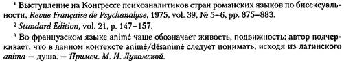 слабо отделенные от него самого, то есть — имаго, недостаточно организованном в качестве объекта? С другой стороны, мы отдаем себе отчет в родстве между психическим движением, которое мы обрисовали выше, с процессом образования переходных объектов, описанных Винникоттом1, в частности на знаменитом примере игры с катушкой. Заметим однако, что в обоих случаях роль нарциссических инвестиций весьма значительна, так как в первом — это место встречи нарциссизма, проецированного ребенком с имаго, а во втором (игра с катушкой, которая служит субститутом отсутствующей матери) — власть от того, что ребенок может заставить катушку вернуться назад, играет не меньшую роль для нарциссического обеспечения и удовольствия, которое он в этом находит. В обоих приведенных автором примерах говорится о материнском имаго. Однако речь идет о матери, которая, как нам кажется, на этом этапе психического развития ребенка слабо отграничена от отца. Она как бы включает в себя его прообраз, который еще не приобретает ценности самостоятельного объекта. Во всяком случае, мать воспринимается не как объект особой любви, но как любимый объект, потеря которого представляет психическую опасность в виде дезорганизации Я, иначе говоря — объект оказывается включенным в нарциссизм ребенка. Многолетняя практическая работа и теоретическое осмысление различных психотических организаций, вначале совместно с Жаном Кестембергом и Симоной Декобер2, позже вместе с Жаном Кестембергом и Рене Анжелергом, позволили нам разработать концепцию «холодного психоза»3. В ходе этих исследований у больных с подобной психической организацией была обнаружена особая форма трансферентных и пре-трансферентных отношений, которая соответствует описанному выше фетишистскому отношению к объекту4. Конечно, и при других психотических организациях можно обнаружить сходные тенденции. В частности при шизофрении, как подчеркивал Ракамье5, имеется тенденция «исключать» из себя внутренний объект, а при паранойе — стремление направлять его вовне на одного или нескольких преследователей. В первом случае это позволяет сопротивляться овладению, во втором — избежать преследования, которое исходит от внутренних объектов. Это может напоминать фетишизацию объекта-аналитика, которую мы находим при холодном психозе,