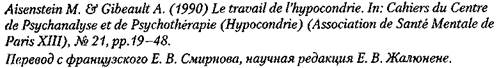 С другой стороны, он не испытывает никаких колебаний в 1895 году, по поводу «ипохондрической фобии» (с. 42; G. W., I, р. 349; S. Е., III, р. 78), описывая случай с одной пациенткой, которая испытывала страх превратиться В сумасшедшую, — психический результат, который он тем не менее связывал с сексуальной неудовлетворенностью. Данная психосоматическая перспектива привела Фройда к мысли о том, что ипохондрия является третьей разновидностью сексуального невроза (1912 Ь), и в то же время он стал видеть в сексуальном неврозе «ядро психоневротического симптома, эту песчинку в центре жемчужины» (G. W., VIII, р. 338; S. Е., XII, р. 218; франц. перевод - с. 179). Введение понятия «нарциссизм» представляет собой следующий этап теоретической разработки понятия «ипохондрия», которое становится объектом нового противоречия между Я-либидо и объектным либидо. Органическое заболевание и ипохондрия становятся двумя аналогичными модальностями отвода либидо в Эго. Акцент сделан на близости ипохондрических страхов с парафрениями и, следовательно, с психозом. По этому поводу Фройд (1914) выдвинул гипотезу о «либидном застое в Эго», который становится источником неудовольствия. Проблема, по его же собственным словам, заключается в экспликативной ценности этого экономического процесса. Однако он не оставляет идеи участия ипохондрического ядра в психопатологической организации, какой бы она ни была — невротической или психотической. Его размышления об ипохондрическом синдроме позволили ему уподобить напряжение от соматического возбуждения больного органа возбужденному генитальному органу. Тем самым он предложил распространить эту «эрогенность» на все органы — как внутренние, так и внешние, Благодаря своей склонности к ипохондрическому страданию тело приобретает эрогенное качество, оценка которого, тем не менее, зависит от распределения количества Я-либидо. В подобной строгой экономической перспективе трудно провести 1 Впервые термин «актуальный невроз» появляется у Фройда в работе «Сексуальность в этиологии неврозов» (1898). До этого он считал его одним из «сексуальных неврозов», как он поступал всякий-раз, когда стремился подчеркнуть роль сексуального фактора в каком-либо неврозе, в том числе и в психоневрозах. дифференциацию между различными соматическими решениями: симптомами истерической конверсии, органическим заболеванием, ипохондрией. Наша задача — углубиться в сущность данной проблемы и точнее определить модальности рассматриваемой психической работы.