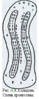 *** Первоначально, когда у простейших организмов впервые слагались генонемные молекулы, они были представлены однообразными более или менее длинными цепями одинаковых звеньев, вроде кератина или серицина. Каждое звено состояло из немногих простых радикалов. При дальнейшей эволюции организма эти молекулы постепенно усложнялись путем присоединения к некоторым звеньям боковых радикалов, получающих значение генов. Мало-помалу число этих боковых цепей, размещенных в определенных пунктах генонемы, увеличивалось, и самые радикалы все более усложнялись. Микроскопическая длина хромосом в слюнных железах дрозофилы представляет картину уже очень высокой дифференцировки генонем. Если признать, что поперечные диски соответствуют генам, то здесь мы должны поместить именно боковые радикалы или цепи радикалов, которые адсорбируют ярко окрашенный хроматин. В таком случае неокрашиваемые сегменты, в которых мы различаем продольные нити, придется признать основными цепями, не осложненными сложными боковыми придатками. Но при дальнейшей дифференцировке и сюда могут присоединиться боковые радикалы - новые гены, а с другой стороны, уже имеющиеся боковые радикалы могут осложняться упрощаться в мутационном процессе. *** Мы, конечно, не должны увлекаться достигнутыми успехами, тем более что в своей химической части они далеки от завершения, более того - еще весьма спорны. За нашей нынешней синтезой еще придет новая антитеза, но это будет уже новый этап развития науки. И вряд ли, по крайней мере у нас в Советском Союзе, найдется хотя бы один ученый, который решился бы объявить все эти научные изыскания бесплодными и никчемными. Кольцов Н. К. Наследственные молекулы. – Л., 1958. - С. 93-118.