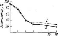Грач Пир Шут Класс Свой Жил Мель Шарф Вспять Смотр Холл Трель Край Мысль Тролль Жди Блеск Злость Свет Воз и ее следует разделить на две части, как показано на рис. 18. Слова в конце списка запоминаются лучше, чем остальные. Последняя единица запоминается в 97% случаев. Поэтому правый конец кривой показывает припоминание из кратковременной памяти, а остальная ее часть отражает иной процесс — извлечение информации из долговременной памяти.