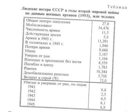 По оценкам С. Максудова (США), огромные потери пс несло гражданское население. Уничтожение евреев, гибель ле нинградцев в годы блокады и гражданского населения от бое вых действий, наконец, повышенная смертность населения н оккупированных территориях составляли около 7 млн человек Примерно столько же потеряла вся страна от ухудшения уело вий жизни в военные годы. Около 3 млн человек составил! потери лагерного населения, включая потери переселенных i годы войны народов юга России1. За годы оккупации на территории СССР было разрушенс 3 тыс. исторических городов, уничтожено 558 музейных зданий, разрушено и полностью разграблено 427 музеев (в России 173). Уничтожено 43 тыс. библиотек и более 100 млн книг, в том числе много редких. Полностью или частично разрушено 334 высших учебных заведения, уничтожено 605 научных учреждений и много других культурных ценностей страны. Перечень утраченного занял бы несколько многостраничных томов. Суммарный ущерб культурному достоянию страны оценивается в 140 млрд рублей в золоте (в ценах 1914 г.). За прошедшие годы цены выросли в сотни, тысячи раз. Большие человеческие жертвы принесла депортация народов Северного Кавказа, Крыма и Молдавии. В период Великой Отечественной войны органами внутренних дел и армейскими частями проведено переселение в восточные районы немцев Поволжья, народов Северного Кавказа, Крыма, Молдавии (см. табл. 12). По приказу Сталина органы внутренних дел осуществляли переселение невероятно быстро. На сбор к отъезду отводилось мало времени и запрещалось брать с собой большой багаж.
