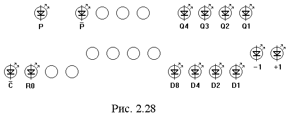Соответствие выводов микросхемы К155ИЕ6 светодиодам испытательного стенда показано на рисунке 2.28, а условное обозначение микросхемы - на рисунке 2.29.