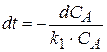 3. Концентрация компонента А (СА) также изменяется во времени. Следовательно, необходимо вначале решить уравнение относительно СА.