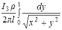С заземлителя стекает ток I3. Найдем выражение для расчета потенциала точек на поверхности земли и потенциала заземлителя. Разбиваем заземлитель по длине на бесконечно малые участки каждый длиной dy и диаметром dy. С каждого такого участка в землю стекает ток, который обуславливает возникновение элементарного потенциала dφ, в некоторой точке земли.