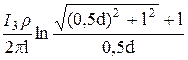 Потенциал заземлителя φ 3, будет, при х = 0, 5d т. е.