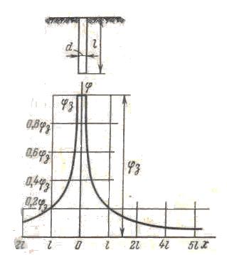 φ з = На рис. 2.3 показана потенциальная кривая заземлителя с вертикальным трубчатым электродом с отношением размеров l: d = 50.