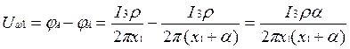Для определения потенциала в точке А выделим в поле растекания тока элементарный слой dх. Падение напряжения dU в этом слое равно