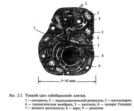Головной мозг человека состоит из огромного количества разнообразных клеток. Клетка- основная единица биологического организма. Наиболее просто организованные животные могут иметь всего одну клетку. Сложные организмы состоят из мириадов клеток и являются, таким образом, многоклеточными. Но во всех этих случаях единицей биологического организма остается клетка. Клетки разных организмов - от человека до амебы - устроены очень, похоже (рис. 2.1). Клетка окружена мембраной, которая отделяет цитоплазму от окружающей среды. Центральное место в клетке занимает ядро, в котором находится генетический аппарат, хранящий генетический код строения всего нашего организма. Но каждая клетка использует в своей жизнедеятельности только незначительную часть этого кода. Кроме ядра, в цитоплазме находится много других органелл (частиц). Среди них одной из самых важных является эндоплазматический ретикулум, составленный из многочисленных мембран, на которых закреплено множество рибосом. На рибосомах происходит сборка молекул белка из отдельных аминокислот по программе генетического кода. Часть эндоплазматического ретикулума представлена аппаратом Гольджи (стопки двойных мембран, плотно прилежащих друг к другу). Таким образом, эндоплазматический ретикулум - это своеобразная фабрика, оснащенная всем необходимым для производства белковых молекул. Другими очень важными органеллами клетки являются митохондрии, благодаря деятельности которых в клетке постоянно поддерживается необходимое количество АТФ (аденозинтрифосфата) - универсального «горючего» клетки. Нейрон, являющийся структурной основной единицей нервной ткани, имеет все перечисленные выше структуры. Вместе с тем нейрон предназначен природой для обработки информации и в связи с этим имеет определенные особенности, которые биологи называют специализацией. Выше был описан самый общий план строения клетки. На самом деле любая клетка нашего организма приспособлена природой для выполнения строго определенной, специализированной функции. Например, клетки, составляющие сердечную мышцу, обладают способностью сокращаться, а клетки кожи защищают наш организм от проникновения микроорганизмов.