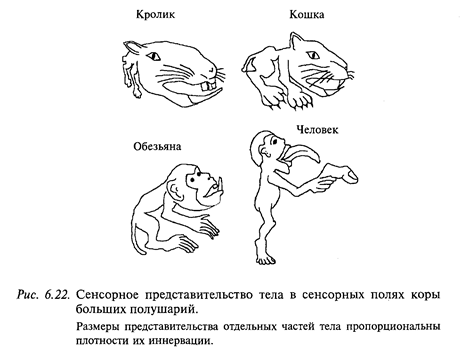 3. Спиноталамический тракт составляют самые тонкие миелинизированные афференты (диаметром до 6 мкм), а также немиелинизированные волокна задних корешков. Они входят в серое вещество спинного мозга и заканчиваются на нейронах основания серого вещества заднего рога. В сером веществе спинного мозга аксоны части этих нейронов перекрещиваются, а другая часть идет ипсилатерально, образуя спиноталамический тракт. Таким образом, спиноталамический тракт проецируется в ядра таламуса (вентральное заднелатеральное, парафасцикулярное и центральное латеральное ядра) билатерально. Часть нервных волокон тракта переключается на нейронах мозгового ствола, аксоны части этих нейронов переходят на контралатеральную сторону и также направляются в таламус. По волокнам спиноталамического тракта передается информация о боли, давлении и температуре. Нейроны этого тракта имеют обширные кожные рецептивные поля, располагающиеся у некоторых нейронов билатерально, покрывая обе задние или обе передние конечности, а иногда даже всю поверхность тела. Нейроны, активируемые при раздражении одной конечности, как правило, тормозятся при стимуляции другой, тогда как нейроны с ограниченными кожными рецептивными полями часто тормозятся с окружающей кожной поверхности. В настоящее время считают, что этот тракт проводит генерализованные ощущения и по нему передается информация только о качестве раздражителя и его грубой локализации. Таким образом, в таламус проецируются две системы: задние столбы (у ряда видов млекопитающих также спиноцервикальная система) и спиноталамический тракт. Эти две системы различаются функционально: первая проводит информацию о месте и модальности раздражителя (протопатическая чувствительность), тогда как вторая обеспечивает генерализованные формы ощущения (эпикритическая чувствительность).