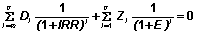 где P1, P2,.... Pk - размер годовых доходов; n - количество лет инвестиции; r - коэфф. дисконта. Сущность этого метода заключается в сопоставлении, приведении стоимости будущих поступлений от инвестированных средств к текущей их стоимости. Данный показатель имеет более высокую точность определения эффекта и нацелен на увеличение капитала предприятия, рост благосостояния акционеров. Метод расчета внутренней нормы доходности - определяет ставку дисконта, при которой чистая текущая стоимость активов приравнивается к нулю. Внутренняя норма доходности (Internal Rate of Return - IRR) имеет и иные названия в специальной литературе, например: внутренняя норма прибыли; внутренняя норма рентабельности; проверочный дисконт; доходность дисконтированных денежных поступлений; внутренний коэффициент рентабельности; внутренняя норма окупаемости инвестиций; внутренняя ставка отдачи. Определением внутренней нормы доходности является расчетная процентная ставка доходности, при которой капитализируемый доход покрывает инвестированный капитал.