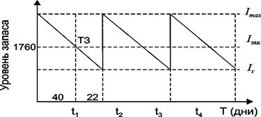 где Зпр– производственный запас; Зпод – подготовительный запас. Производственный запас – запас, необходимый для нормального осуществления производственного процесса. Подготовительный запас – запас, необходимый на время подготовки прибывающих на предприятие материалов к производственному потреблению. Страховой запас – запас, который вводится для удовлетворения непредсказуемого увеличения спроса и предназначен для бесперебойного обеспечения производства материалами при отклонении от принятых интервалов поставки (Зстр)