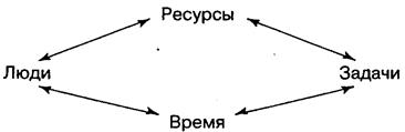 Рис. 11.1. Связь ресурсов и времени Чтобы не отстать от своих конкурентов, каждая независимая производственная организация должна тщательно планировать перспективу развития собственного производства и потребностей рынка минимум на 2–3 года (стратегическое планирование). Любые просчеты при этом грозят убытками и даже полным разорением. Фирме необходимо предусматривать перспективу до мелочей по каждому этапу, начиная с проекта изделия, разработки технологии, опытно-экспериментальных работ и заканчивая запуском, а затем и прекращением производства старых изделий и выходом на рынок с новой продукцией. Все должно быть увязано с экономикой внутри предприятия, налоговой системой и кредитной ситуацией, положением на рынке и намерениями конкурентов, ситуацией за пределами предприятия. Планирование и управление деятельностью фирмы неразрывно связаны. В зарубежной практике они нередко объединяются одним понятием – «менеджмент». В учебной литературе вузов Японии управление и планирование представлены как на рис. 11.2.