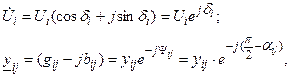 Такая запись УУН удобна для анализа режима генераторных узлов, потому что в этих узлах, как правило, вместо реактивной мощности задается модуль напряжения. Для получения новой формы УУН применяется показательная форма записи комплексов: