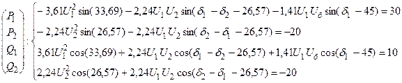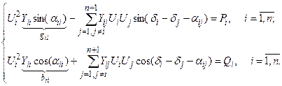 Приравнивая действительные и мнимые составляющие, получаем уравнения баланса мощностей в полярной системе координат: