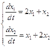 Пример. Найти решение системы линейных однородных дифференциальных уравнений