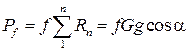 где fn – коэффициент сопротивления качению n -го колеса; Rn – нормальная реакция опорной поверхности n- го колеса; п – число колес. Коэффициент сопротивления fn у ведущих и ведомых колес отличается мало. Поэтому при расчетах движения ПА Pf можно вычислять по формуле (рис. 6.1):