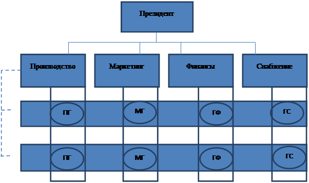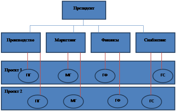 Преимущества: · высокая эффективность; · высокая гибкость. Недостатки: · двоевластие; · высокие требования к квалификации сотрудников; · разобщенность и конкуренция за ресурсы между отдельными проектами.